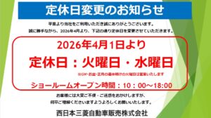 4月からの定休日変更のお知らせ