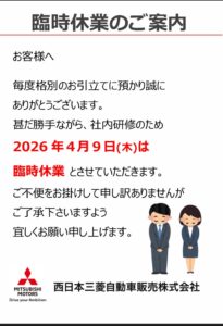 徳重店こんにちはいつも徳重店ブログをご覧いただきありがとうございます。誠に勝手ではございますが4月9日(木)は社内研修の為臨時休業とさせていただきますご不便、ご迷惑をおかけしますがよろしくお願い申し上げます…