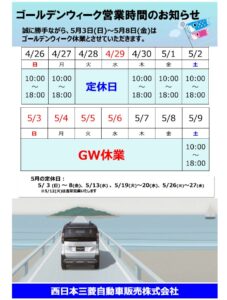 【店舗情報】ゴールデンウィーク休業・5月定休日のお知らせ