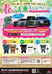 【お知らせ】\見て、乗って、お気軽に!/ 春の試乗キャンペーン開催! ~「デリ丸。ぬいぐるみ」が当たるチャンス!~