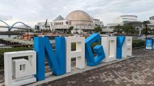 600 days to Go!! 8/22は三菱未来館も参加する 「大阪・関西万博開催600日前!」 建設が始まった万博会場のシンボル、大屋根(リング)。 リングの近くをミャクミャクも散歩しているよ!…