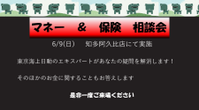 皆さんこんにちは、実習生の杉田です。 本日は6/9(日)に実施する マネー&保険 相談会についてご紹介します 老後の資金を不安に思っている方、 日々の保険が高いと思っている方や 保険を見直したいと思っ…