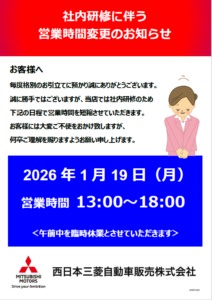 藤井寺店こんにちは! 藤井寺店です!! ~展示会のお知らせです~ 昨日から新型デリカD:5の展示車が藤井寺店にやってきております! 期間は11/8-10の3日間! 昨日も多くのご来店を頂きありがとうございまし…