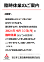 9月30日 月曜日は社内研修の為 臨時休業とさせていただきます。 万が一の急なトラブルの際はJAFにてご対応をお願い致します。 0570-00-8139/#8139 ご不便をおかけしますがどうぞお願い…