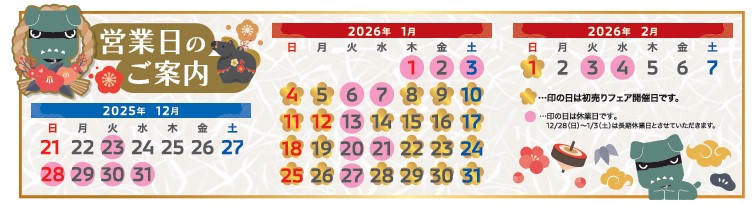新年は、1月4(日)より新春初売りフェアを開催致しますので