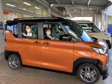 実習生の山口と大向です! 本日5月9日より、三菱自動車工業(株)より参りました。 約2か月間、グリーンロード店にて販売実習をさせていただくこととなりました (運転手:山口 後部座席:大向) (愛犬:デ…