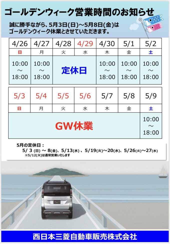なお、ゴールデンウイーク明けの5月12日(火)は営業します。