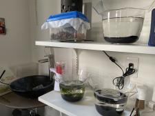 こんにちは!! 新たな家族が我が家にやってきました! ご紹介します! シロ!(白メダカ) オロチ!(オロチ) ノッくん!(ノコギリクワガタ) (今朝のお寝坊さん) みんな暑さに弱いので風通しの良い涼し…