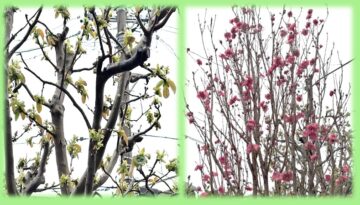 左:芽吹いてうっすらとピンクの花のつぼみがちらほら『かりん』