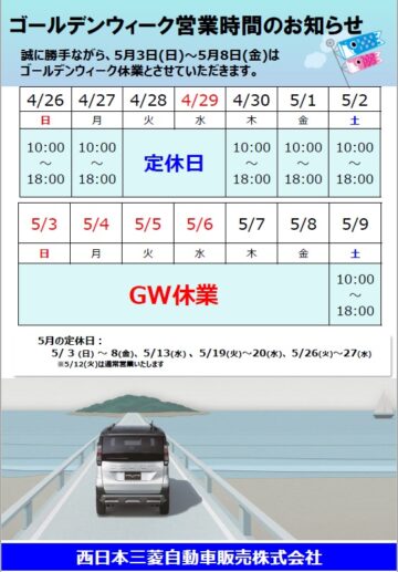 GW休業日のお知らせ🎏