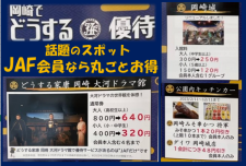本陣店こんにちは 今日も汗ばむ陽気でしたね このまま暖かくなるのかな~ なんて思っていたところに JAFの営業さんご来店 『岡崎でどうする』優待の ご案内です 話題のスポットがJAF会員なら丸ごとお得 岡崎…