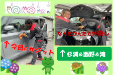 こんにちは日曜日の今日 朝からたくさんのお客様にご来店いただき ありがとうございます さてお昼下がりの工場を覗いてみたら。。 いましたいました 着任一ヵ月が経過したサジットは 洗車もかっこよくこなして…