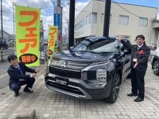 出雲店の福井です!! みなさまお待たせ致しました!! 待望の新型アウトランダーが出雲店に到着☆彡 新型アウトランダー特徴① なんといっても電気走行できる距離がふえましたよー♫ 新型になり100キロは電…