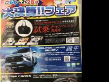 こんにちは2月とは思えないくらい暖かい日中が続いていますね。 大決算フェアーも二週目を迎えます。 新型D:2や新型エクリプスクロスの試乗車もありますのでお気軽にご来店下さいませ。 ショー…