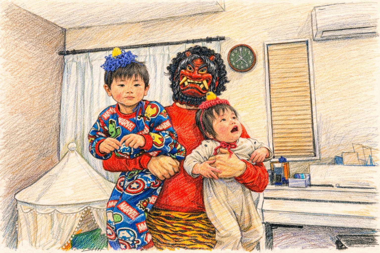 妹の赤鬼ちび姫ちゃん の 2人の子鬼ちゃん