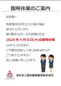 いつも門真店のブログをご覧いただき ありがとうございます 少し前のブログでも ご案内しましたが 誠に勝手ながら 明日 2024年 4月 8日(月) は 社内研修のため 臨時休業 とさせていただきます…