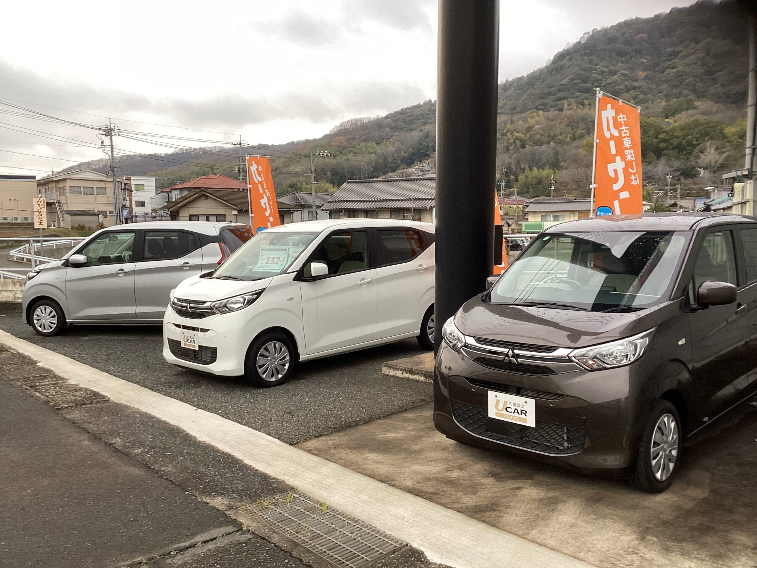 笠岡店ショールームの西側にはekワゴンの中古車を展示しています!