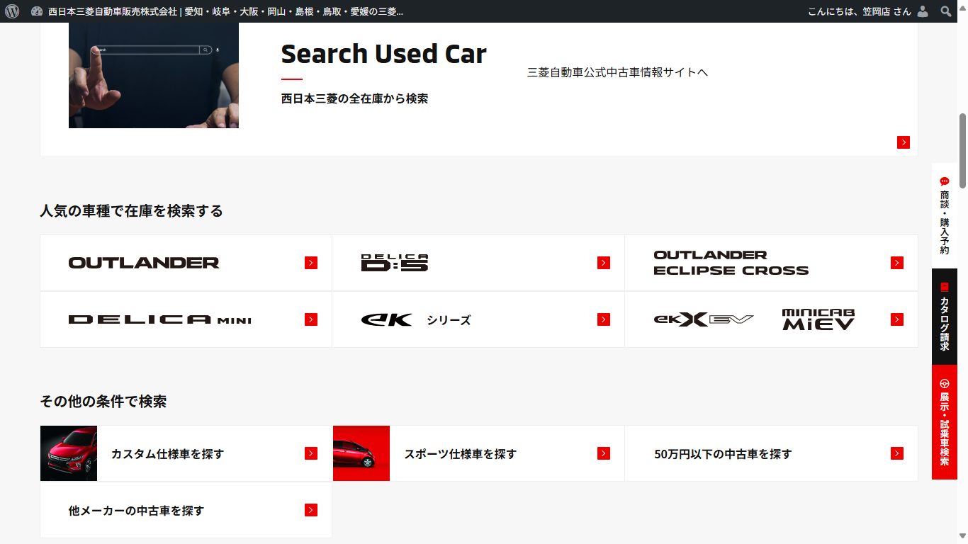 笠岡店西日本三菱自動車 笠岡店 内田です。 中古車って自分が思っている車を探すのは大変ですよね! 西日本三菱で取り扱っている中古車を簡単に検索できるんです! 西日本三菱自動車のホームページを開くと上段に「中…