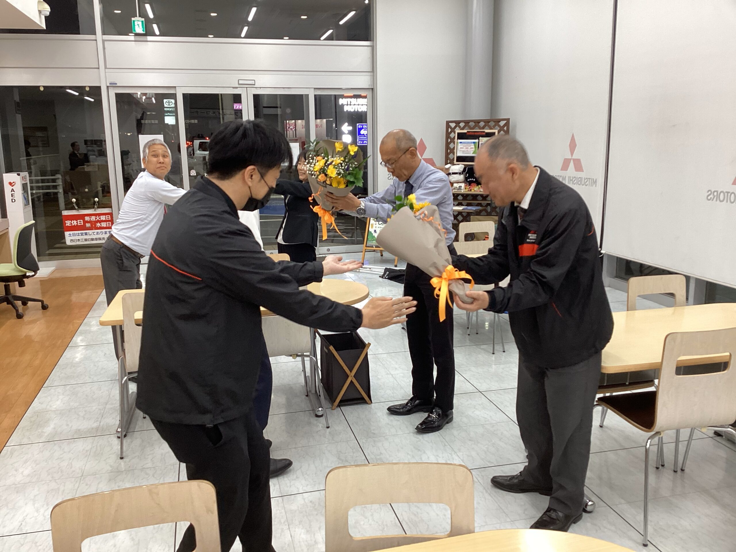さて、このたび笠岡店では山本店長、サービスフロント加藤さん、ショップスタッフ尾形さんの3名のスタッフが店舗移動となりました。さみしい・・・また逢う日まで・・・