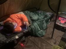 笠岡店 内田です。 4月の上旬の県北の山間部ではやっぱり冷え込みます(^^; テントに禁断のストーブをインストールしてぬくぬくです(^^/ 外は寒いのでY村さんから頂いた薪をガンガン燃やして温まります…