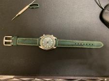 笠岡店 内田です。 笠岡店で営業になって最初に買った時計ですがミニタリーチックでカッコ良かったのですが、バンドが脆くすぐに壊れてしまい逆にバンドを色々取り換えて遊んでいます。 たまたま純正っぽいバンド…