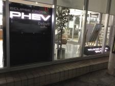 新型エクリプスクロスPHEVデビューしました。 夜に目立つようにお店の中から光の展示看板を掲示しています。 是非!! お店の前を通るときには見てくださいね。 PHEVの秘密はショールームの中で確認して…