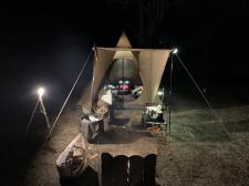 西日本三菱自動車販売 笠岡店 内田です! 雨の中買い出しも終わり、一路キャンプ場へ! 帰るころには日も暮れて、早速晩御飯です! じゃじゃん!唐揚げ弁当! テントの中で美味しく頂きました(^^; この後…