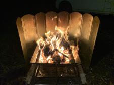 西日本三菱自動車販売 笠岡店 内田です。 前回の続きです。 焚火はこんな感じでやっています。 実は底板をメッシュにしているので、すごく燃えます! 後ろに大きい風防がリフレクターも担っていて、とても暖か…