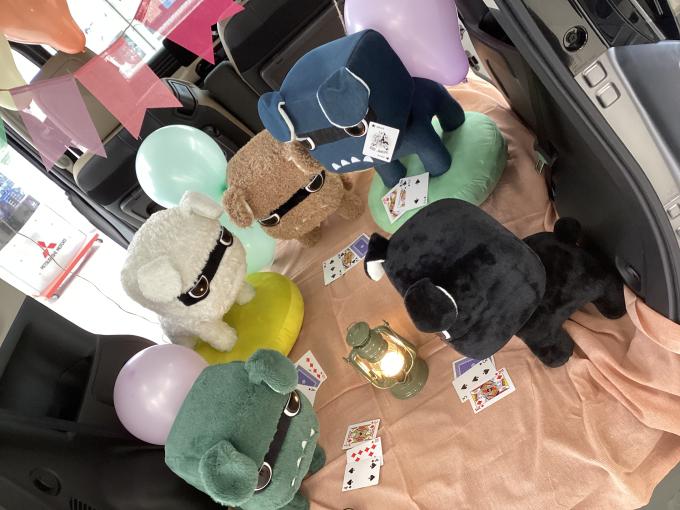 新型デリカミニの中でデリ丸。たちがパーティをしているようです。
