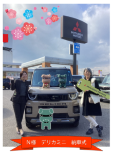 春日井バイパス店こんにちは。春日井バイパス店です! 1月の納車式のご紹介第②弾です。 順番が前後してしまい申し訳ありません💦 1/24(土) N様にデリカミニを納車しました★ ※お客様に写真掲載の許可を…