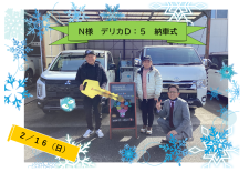 こんにちは。春日井バイパス店です! 2月の納車式のご紹介第弾です。 2/16(日) N様にデリカD:5を納車しました ※お客様に写真掲載の許可をいただいております。 新しいお車で素敵なカーライフをお過…