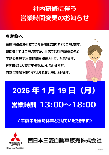 岸和田店こんにちはショップスタッフの山本です 誠に勝手ながら、2026年1月19日(月)は 社内研修のため 開店時間を13:00に変更させていただきます。 閉店時間は通常通り18:00となります。 ご不便をお…