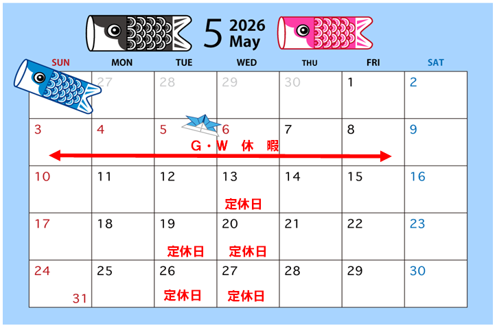 ☆5月の定休日のご案内☆