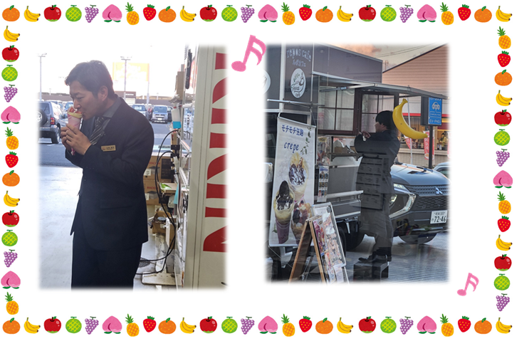 👆クレープを食べるBoss&クレープを購入する片岡君