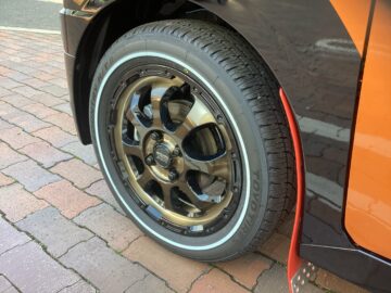 スタイリッシュなアルミホイールとホワイトリボンタイヤでバチバチにイケてますね