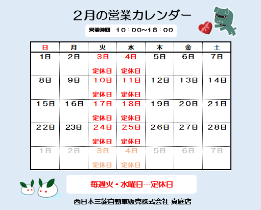 真庭店いつも真庭店のブログを見てくださり、 誠にありがとうございます。 1月の営業日についてお知らせです🚙 誠に勝手ながら、1月19日(月)は 社内研修のため営業時…