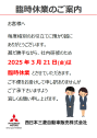 いつも真庭店のブログを見てくださり、 誠にありがとうございます♪ 再度お知らせいたします。 3月21日(金)は社内研修の為、 臨時休業とさせていただきます。 お客さまにはご迷惑をおかけし…