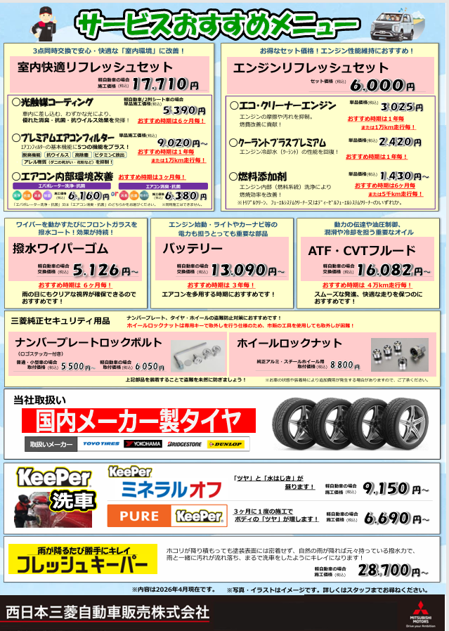今回は、4月のサービスおすすめメニューご案内です💁‍♀️