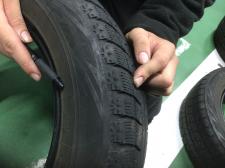 冬タイヤの豆知識をひとつ。。。 残り溝の見方を説明します。 冬タイヤとしての残り溝は夏タイヤと違うんです! まず、タイヤ側面の矢印を見つけます 次に設置面の溝に残溝のマークがあるのを確認します。 マー…