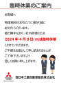こんにちは 松山きし店です 本日は臨時休業のお知らせです 勝手ながら、社内研修のため 2024年4月8日(月)は臨時休業 とさせていただきます。 ご不便をおかけして申し訳ありませんが よろしくお願い申…