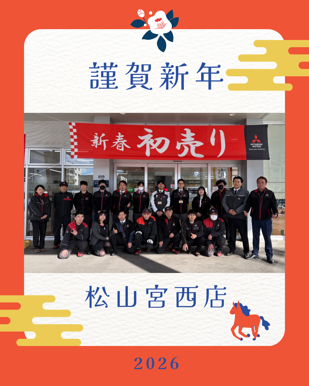 松山宮西店🎍新年明けましておめでとうございます 🎍 2026年も松山宮西店をよろしくお願いいたします! 本日1月4日より初売りスタート✨ 福袋やおすすめ車…