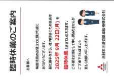 いつも箕面店のブログをご覧いただき ありがとうございます。 ショップスタッフの西浦です。 今日から通常営業しております🚙 夏季休業をいただきありがとうございました みなさんは楽しい夏休みを過ごされまし…