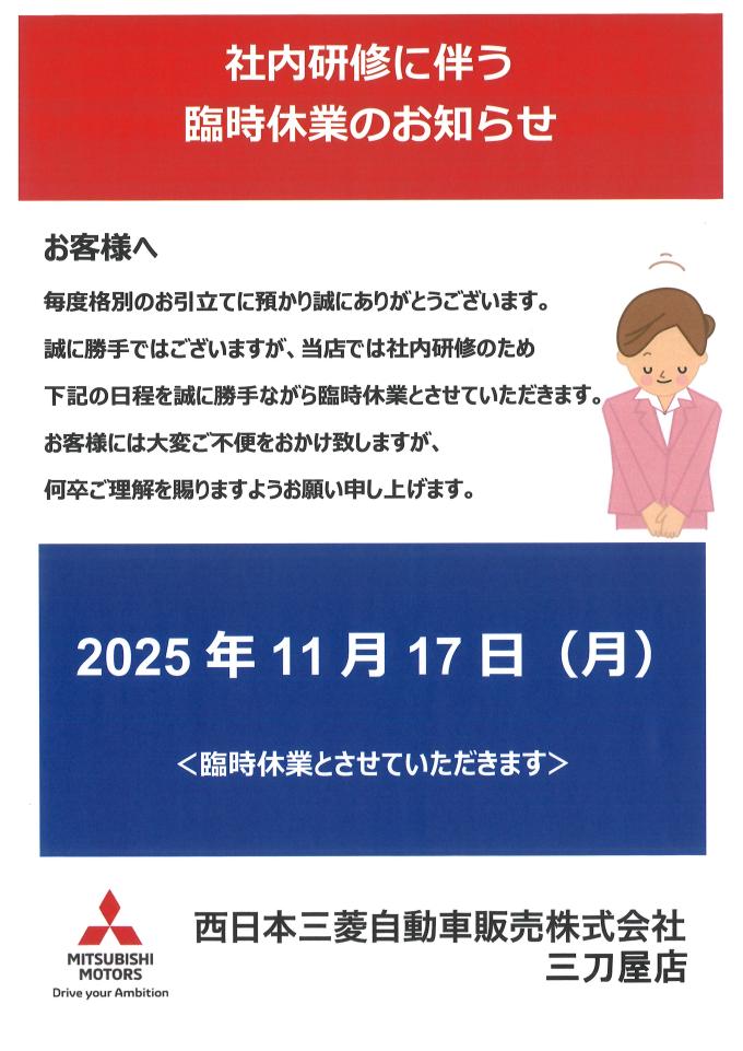 社内研修の為臨時休業とさせていただきます。