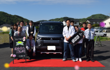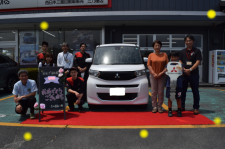 こんにちは、サービスの石山です。 先日のサービススタッフ岸本君の納車式のご紹介です。 休日の納車という事で、お母さんと一緒に納車式をさせて頂きました!! デリカミニをこれからどんどんカスタムしていくみ…