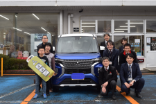 こんにちは、営業の佐川です。 前回に続きまして 大決算フェアにご成約頂きました お客様の納車式の様子です!! EKクロススペースをご成約頂きました Ⅰ 様 です。 ショールームに展示していました サフ…