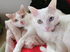 こんにちは('ω')ノ うちのにゃんこ(=^・^=)を紹介します 白い方が「ラムネ」ツンデレクール系 茶白が「はらみ」甘…