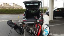 カタログにはゴルフバック4個乗ると 記載がありますが、本当なの?という 疑問にお答えする為検証しました。 使用するのは水島店の試乗車、グレードは P 水島店のスタッフ4名にキャディバック(9,5インチ…
