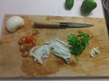 最近 肌寒い朝が多くなりましたね。 少し前ですが、休日の朝、トーストだけじゃなんか寂しいと思いまして、菜園から自宅で出来たもの で、ピザ風トーストを作ってみました。 生育の悪い玉ねぎ。少し小さいピーマ…