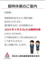 お世話になります。 守口店 営業の永森です。 4月8日は甚だ勝手ながら、社内研修の為 臨時休業させて頂きます。 ご不便おかけして申し訳ございません。 よろしくお願いいたします。…