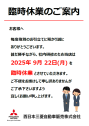 いつもブログをご覧いただきありがとうございます。 守口店です。 臨時休業のお知らせです。 {{pics1}} 9月22日(月)を臨時休業とさせていただきます。 皆様にはご迷惑お掛け致しますが 宜しくお…
